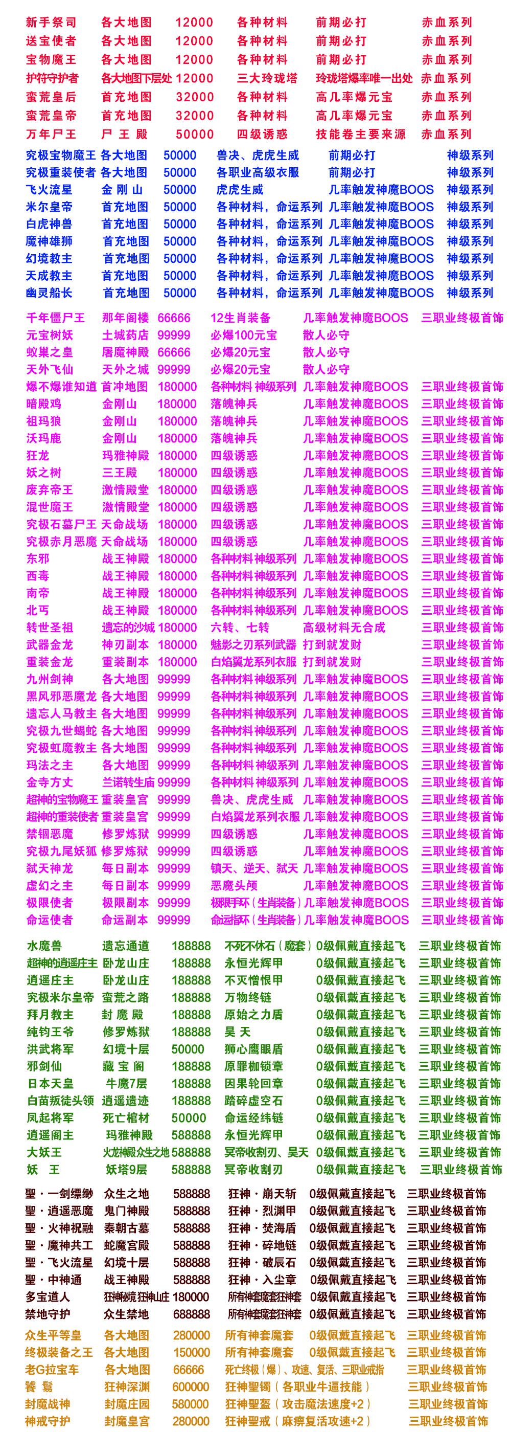 1、本服所有地图均实用,地图费用低,每一层下口处都有一个BOSS,最后一层有超级BOSS